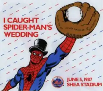 Spider-Man's wedding at Shea Stadium in 1987 was a publicity stunt and live performance adaptation of the comic book storyline "The Wedding!" produced by Marvel Comics. The event was meant to advertise the special issue of The Amazing Spider-Man comic book, which went on sale the next Tuesday and took place at home plate in front of more than 45,000 fans just before the New York Mets played the Pittsburgh Pirates.[2][3][4][5][6][7][8][9][10][11][12]