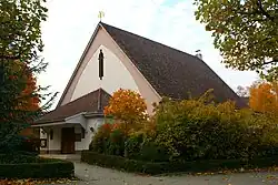 St. George's Church (Englische Kirche zu St. Georg between 1885 and 1944) is an Anglican church in Berlin, Germany, a parish of the Diocese in Europe of the Church of England. The original building was erected on Monbijou Park in 1885, but during the Second World War was destroyed in allied bombings. The original site on Oranienburger Straße happened to be in what had become the Soviet sector of Berlin in 1945 and was therefore abandoned and the ruins removed in 1949. In 1950, the congregation built a new church on the corner of Preußenallee and Badenallee in Neu-Westend, part of the Westend locality of Berlin in the British sector. The church served as the garrison church of the British Army during the Allied occupation, and reverted to civilian control in 1994.