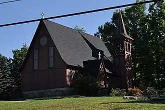 St. Mark's Episcopal Church is an historic Episcopal church located at 6-8 Highland Street in Ashland, New Hampshire, in the United States. Organized in 1855, it is part of the Episcopal Diocese of New Hampshire. Its building, completed in 1859, was designed by New York City architect J. Coleman Hart, and is one of the region's most distinctive churches, having a Gothic Revival design built out of half-timbered brick. On December 13, 1984, the church building was added to the National Register of Historic Places.[1] The current pastor is Rev. Tobias Nyatsambo.