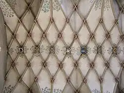 The nave is spanned by a uniform net vaults, whose single-fillet ribs spring from the wall without a corbel. The height of the vault is slightly more than 9 meters, all the rib intersections located on the central axis are provided with decorated keystones. The net vaults of the eight inset chapels, which are just under a meter lower, have the same structure, each with a central keystone.[6]