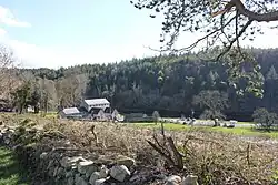 The village is named after Saint Moling (or Mo Ling, 614–697), who founded a monastery there in the early 7th century.[3] The monastery was said to have been built with the help of "Gobán Saor", the legendary Irish builder. In the 8th-century manuscript, known as "The Book of Mulling", there is a plan of the monastery - the earliest known plan of an Irish monastery - which shows four crosses inside and eight crosses outside the circular monastic wall. It is said that St Moling dug a mile-long watercourse with his own hands to power his mill, a task that took seven years. He became Bishop of Ferns, died in 697 and is buried at St Mullins.[4] The St Moling watercourse is still there, but the original monastery was plundered by Vikings in 951 and was again burnt in 1138. An abbey was later built on the site.