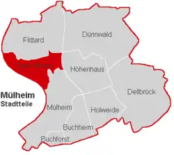 Stammheim (German pronunciation: [ˈʃtamhaɪm]) is a municipal part of Cologne, Germany and part of the district of Mülheim. Stammheim lies on the right bank of the river Rhine, between Mülheim (proper) and Flittard. The city part has 7.473 inhabitants (as of 31 December 2008) and covers an area of 3,75 km2.