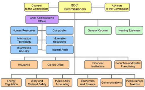 The SCC's authority encompasses utilities, insurance, state-chartered financial institutions, securities, retail franchising, and railroads.