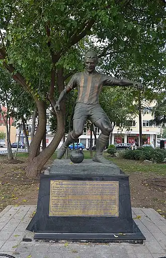 A statue of Lefter Küçükandonyadis is installed Kadıköy's Yoğurtçu Park, in Istanbul, Turkey. The sculpture was unveiled in 2009.[1][2]