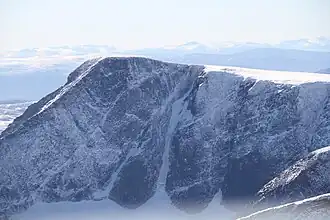 Storstyggesvånåtinden[3] or Storsvånåtinden[3] is a mountain in Lesja Municipality in Innlandet county, Norway. The 2,212-metre (7,257 ft) tall mountain lies within Dovrefjell-Sunndalsfjella National Park, about 20 kilometres (12 mi) north of the village of Dombås in the Svånåtindan mountains. The mountain is surrounded by several other mountains including Nørdre Svånåtinden which is about 3 kilometres (1.9 mi) to the north, Snøhetta which is about 5 kilometres (3.1 mi) to the northeast, Skredahøin which is 3 kilometres (1.9 mi) to the south, and Mjogsjøhøe and Mjogsjøoksli which are about 7 kilometres (4.3 mi) to the southwest.