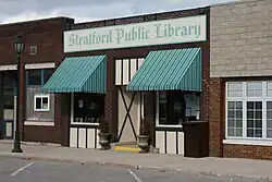 Stratford was platted in 1880.[4] It was named after Stratford-upon-Avon, in England.[4] A post office has been in operation in Stratford since 1881.[5] Stratford was actually first founded at Hook's Point, Hamilton County, Iowa. Stratford had a train coming through from 1880 until World War II. Stratford has an independent school system with an elementary school located on the corner of Shakespeare Avenue and Dryden Street.