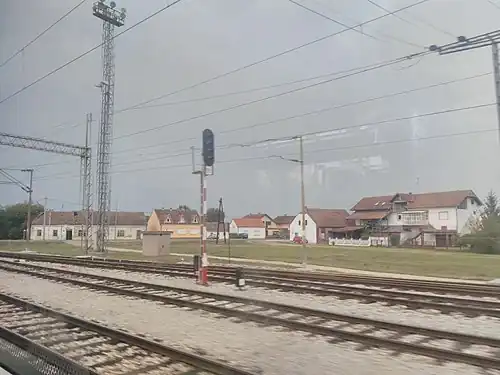 Strizivojna–Vrpolje railway station (Croatian: Željeznička stanica Strizivojna–Vrpolje) is a railway station on Novska–Tovarnik railway. Located between two settlements Strizivojna and Vrpolje. The railroad continued to Andrijevci in one, in the other direction to Stari Mikanovci, in third direction to Đakovo and the fourth direction towards to Kopanica–Beravci. Strizivojna–Vrpolje railway station consists of 10 railway track. [1]