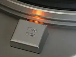 Another application of the stroboscope can be seen on many gramophone turntables. The edge of the platter has marks at specific intervals so that when viewed under fluorescent lighting powered at mains frequency, provided the platter is rotating at the correct speed, the marks appear to be stationary. This will not work well under incandescent lighting, as incandescent bulbs do not significantly strobe. For this reason, some turntables have a neon bulb or LED next to the platter. The LED must be driven by a half wave rectifier from the mains transformer, or by an oscillator.