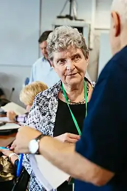 Gannushkina worked for many years as a professor of mathematics at the Russian State University for the Humanities.[3] In 1990, she helped to found the Civic Assistance Committee (Komitet Grazhdanskoe Sodeistvie), an NGO which campaigns for human rights, particularly with regard to immigrants and refugees in Russian society.[4] Since 2015, the organization is labelled a "foreign agent" by the Russian government.[4]