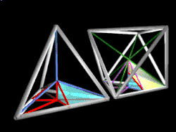 - The rational volumetric quantation or constant proportionality of the octahedron, the cube, the rhombic triacontahedron, and the rhombic dodecahedron when referenced to the tetrahedron as volumetric unity.