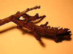 Stems bearing deformed fruit may also thicken and grow with a deformation. The leaves are smaller and strap-like and shoots may be swollen, pale yellow and tinged with red.[1] The fungus may also cause dense clusters of live and dead twig, called witch's brooms. Some authors suggest these are caused by the very similar Taphrina insititia, others that this is only a form of Taphrina pruni.[6]