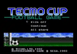 Tecmo Cup Football Game is a cancelled 1993 association football sports video game. While the game was about to be published by Sega with license from Tecmo for the Sega Mega Drive, it was cancelled due to the release department of Sega Europe's policy regarding third party games (along with many other games, most of them that already had a Japanese release, like Splatterhouse 3 or Golden Axe III).[1] The game would have enjoyed a Europe-exclusive release because the game was heavily promoted on many magazines and promo videos at the time. 'SuperJuegos' magazine from Spain even had a VHS promotion video including footage of the game and promoting its further release. There is a ROM of this game available on the Internet despite not having been released in cartridge form.