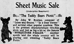 Advertisement for sheet music of "The Teddy Bears Picnic" as published in the Star Tribune newspaper in April 1908
