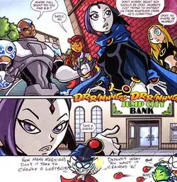 Most issues were largely self-contained stories, and included a number of characters outside the core group of Robin, Raven, Starfire, Beast Boy, and Cyborg. Given that character licensing restrictions in DC Comics are different from those on the show, Teen Titans Go! was able to include characters such as Wonder Girl who were not licensed for the series.[1] Each issue contained riddles, sight gags, and jokes played out by super deformed characters outside the page margins.