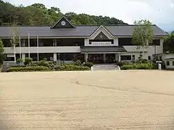 - Yumoto Junior High School (天栄村立湯本中学校; closed in 2023) - The building was two stories tall.[6] It began operations in 1947.[8] Its peak population was in the 1960s. A sharp population decline occurred after 2000.[6] Circa 2020 the population was five.[8] The population loss resulted in it closing in 2023, with its final graduating class having two students.[6]