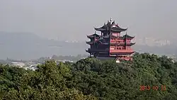 Leifeng Pagoda, or the Leifeng Hill where the pagoda stands,[15] in the sunset