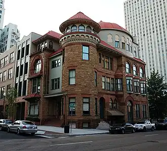 The Tennessee Club, also known as the Overall Goodbar Building, is a historic townhouse in Memphis, Tennessee, U.S.. Designed by architect Elah Terrell, it was built in 1888 for two doctors by the names of Overall and Peete.[2] Colonel William F. Taylor, a veteran of the Confederate States Army who served under General Nathan Bedford Forrest during the American Civil War, also had an office in the building.[2] By 1890, it became the home of the Tennessee Club, a social club founded in 1875.[2] From 1907 to 1927, it was home to Overton and Overton, a real estate firm.[2] It has been listed on the National Register of Historic Places since April 22, 1982.[3]