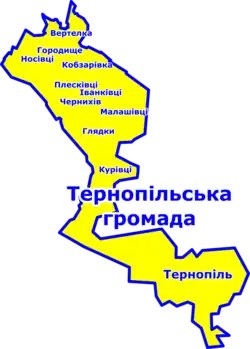 2. ^ Ternopil community (composition). Decentralization.gov.ua
