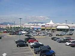 The Brentwood Shopping Centre opened on August 16, 1961, with 10,000 visitors on the first day causing traffic congestion on the Lougheed Highway.[5] The mall had 50 stores, a total of 37,600 square metres (405,000 sq ft) of retail space, 2,400 parking spaces, and covered 12 hectares (30 acres)—making it the largest in Canada.[6] Its anchors included Eaton's, Loblaws (their first store in British Columbia), and Zellers; other stores were spread between an enclosed area and outdoor strip mall.[7][8]
