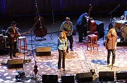 "The Battle of Evermore" was played live at Led Zeppelin concerts during the band's 1977 North American Tour. For these live performances, Jones sang Denny's vocals and played acoustic guitar whilst Page played mandolin. Sometimes John Bonham sang Denny's vocals along with Jones.[18] The British rock band Fairport Convention performed "The Battle of Evermore" with guest vocalists Plant and Kristina Donahue at Fairport's Cropredy Convention on 9 August 2008.[19] Plant and Alison Krauss regularly performed "The Battle of Evermore" on their tour of US and Europe in spring and summer 2008 in promotion of their 2007 collaboration album Raising Sand.[20]