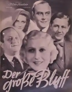 The Big Bluff (German: Der Große Bluff) is a 1933 German comedy film directed by Georg Jacoby and starring Lee Parry, Betty Amann, and Harald Paulsen.[1] It was shot at the EFA Studios in Berlin. The film's sets were designed by the art director Erich Czerwonski.