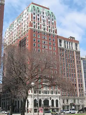 The Blackstone Hotel is a historic 290-foot (88 m) 21-story hotel on the corner of Michigan Avenue and Balbo Drive in the Michigan Boulevard Historic District in the Loop community area of Chicago, Illinois. Built between 1908 and 1910, it is on the National Register of Historic Places. The Blackstone is famous for hosting celebrity guests, including numerous U.S. presidents, for which it was known as the "Hotel of Presidents" for much of the 20th century,[2] and for contributing the term "smoke-filled room" to political parlance.[3]