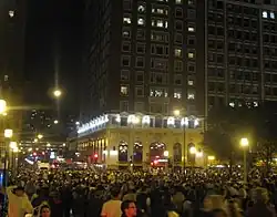 View along Michigan Avenue outside of The Blackstone of crowds leaving Grant Park after Barack Obama's 2008 election victory speech