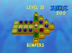 The play mechanics for both games are almost identical, but in Bombing Islands there is a step meter counting each step and move that Kid Clown makes. This earns the player Gold, Silver, Bronze or no medal. The N64 version doesn't have this step counting requirement, but Charlie can jump without having to step on spikes to do so, while Kid Clown only jumps when having stepped on spikes. Some of the sixty levels in the game are the same from one version to the next, but the graphics to both are completely different, even though the obstacles serve the same purpose with both versions.