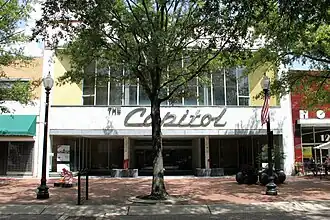 The Capitol, also known as The Capitol Department Store, is a historic department store building located at Fayetteville, Cumberland County, North Carolina. The original store was established at this site in 1921, with an existing two-story building incorporated into it in 1936. In 1949, the existing building was doubled in size by a large rear addition. The most notable feature is the 60-foot (18 m) wide Modern Movement storefront added in 1955. It features marble facing, a recessed storefront, a large convex full-height window in the second story, and large aluminum script lettering for The Capitol. The Capitol, the last department store remaining in downtown Fayetteville, closed in March 1990.[2]