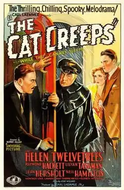 The Cat Creeps is a 1930 American pre-Code mystery film directed by Rupert Julian based on the 1922 play The Cat and the Canary by John Willard. The film is a sound remake of The Cat and the Canary (1927).[2] Starring Helen Twelvetrees, Raymond Hackett, Neil Hamilton, Lilyan Tashman, Jean Hersholt, Elizabeth Patterson, and Montagu Love.