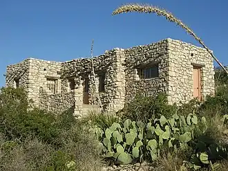 The Caverns Historic District comprises the central developed area of Carlsbad Caverns National Park. The complex was built between the early 1920s and 1942, initially in Pueblo Revival style, and later in New Mexico Territorial Revival style in the area around the natural entrance to Carlsbad Caverns. The earlier structures are built of local limestone, the later buildings in adobe. Thirteen buildings in the district are considered contributing structures. Buildings built between 1940 and 1942 were constructed with labor provided by the Civilian Conservation Corps.[2]