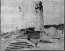 Plans for a public memorial to honour those from the Straits Settlements who died in World War I (WWI) were first proposed in December 1918 by the Executive Council of the colony, though progress was slow.[7] It was initially believed that the new memorial was to replace the Dalhousie Obelisk, but its location was later moved to Esplanade Park where it would face the seafront. By May 1920, four designs were submitted to the government committee, with the committee preferring a design that would be modelled after the war memorial in London.[8] It was reported that when the designs were first presented, there were complaints as they came from a private firm, and if picked would harm architects in the public service. A contest was subsequently held, with the original design winning.[9]