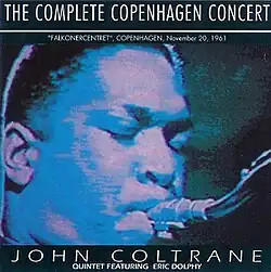 The Complete Copenhagen Concert (also released as Complete 1961 Copenhagen Concert) is a live album by jazz musician John Coltrane. It was recorded on November 20, 1961, at the Falkonercentret in Copenhagen, Denmark during a European tour, and was released in 2009 by both Magnetic Records, a label based in Luxembourg, and Gambit Records, based in Spain. In 2013 it was reissued by 'In' Crowd Records. The album features Coltrane on tenor and soprano saxophone, Eric Dolphy on bass clarinet, alto saxophone, and flute, McCoy Tyner on piano, Reggie Workman on bass, and Elvin Jones on drums.[1][2][3][4][5]