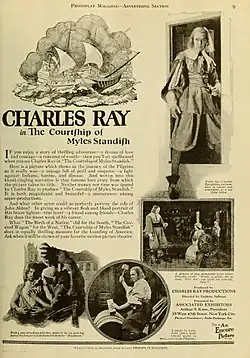The Courtship of Miles Standish, also known as The Courtship of Myles Standish,[1] is a 1923 American silent epic historical romantic drama film about Myles Standish produced by and starring Charles Ray, Enid Bennett, and E. Alyn Warren.[2] Directed by Frederic Sullivan, nephew of the famous composer Sir Arthur Sullivan, and scripted by Albert Ray, the film is based on Henry Wadsworth Longfellow's 1858 poem The Courtship of Miles Standish.[3] No prints of the film are known to exist and it is now presumed lost.[4]