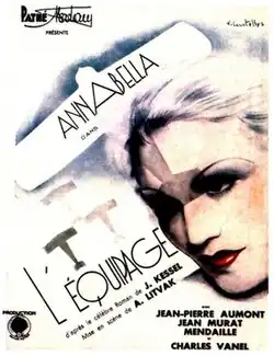 The Crew (French: L'Équipage) is a 1935 French war drama film directed by Anatole Litvak and starring Annabella, Charles Vanel, Jean Murat and Jean-Pierre Aumont.[1] [2] It was shot at the Joinville Studios in Paris and on location at an airfield in Mourmelon-le-Petit.[3] The film's sets were designed by the art directors Lucien Aguettand and Lucien Carré. It is also known by the alternative title Flight Into Darkness.