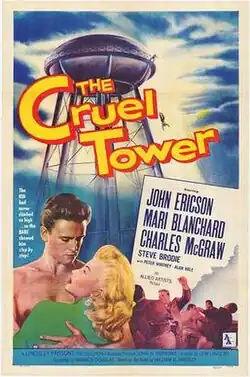 The Cruel Tower is a 1956 American adventure film directed by Lew Landers and written by Warren Douglas. It is based on the 1955 novel The Cruel Tower by William Brown Hartley. The film stars John Ericson, Mari Blanchard, Charles McGraw, Steve Brodie, Peter Whitney and Alan Hale Jr. The film was released on October 28, 1956, by Allied Artists Pictures.[1][2][3]