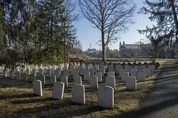 In 1907, the present Jesuit cemetery was created in a filled-in swamp, replacing two previous burial grounds on the campus. Along with those exhumed from the prior cemetery, twenty-four bodies were brought from West Park across the river to the new cemetery. The cemetery was expanded an acre north in 1939 and began use in the late 1940s.[1]: 5:7–8