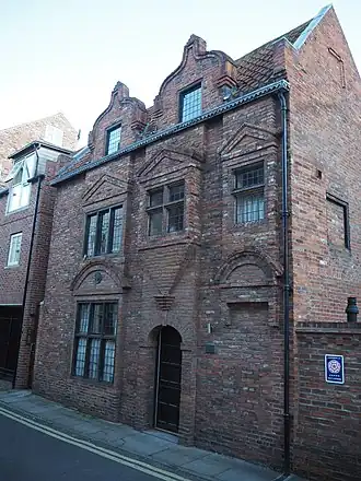 In the 18th century, the building's interior was heavily altered, and by the early 19th century it had been divided into three tenements.[2] In 1954, it was Grade II* listed but it was in a poor state of repair,[3][2] and in 1956, John Smith's Brewery announced plans to demolish it.[4] Instead, the York Civic Trust restored the building,[4] with much of the front wall entirely rebuilt, as a copy of the original.[2] It then formed part of the brewery,[3] but in 2010 was converted to accommodation, and has since been available to let for holidays. This more recent work won a York Design Award.[1]