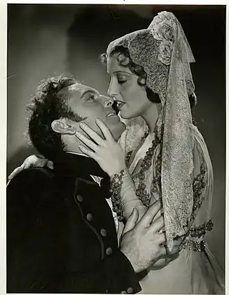 The Firefly is a 1937 American historical musical film directed by Robert Z. Leonard and starring Jeanette MacDonald, Allan Jones and Warren William. The film is an adaptation of the operetta of the same name by composer Rudolf Friml and librettist Otto A. Harbach that premiered on Broadway in 1912. The film used nearly all of the music from the operetta but jettisoned the plot in favor of a new storyline set in Spain during the time of the Emperor Napoleon I. It added a new song, "The Donkey Serenade" (a reworking by Herbert Stothart of Friml's 1918 orchestral piece 'Chanson'[3]), which became extremely popular, as was one of the Friml songs, "Giannina Mia". The original release prints of the film were elaborately tinted with Sepia-Blue, Sepia-Orange and Sepia-Blue-Pink.[4]