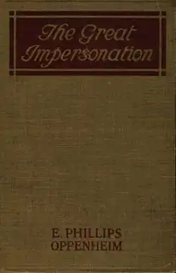 The Great Impersonation is a mystery novel written by E. Phillips Oppenheim and published in 1920. German Leopold von Ragastein meets his doppelganger, Englishman Everard Dominey, in Africa, and plans to murder him and steal his identity to spy on English high society just prior to World War I. However, doubts of the returned Dominey's true identity begin to arise in this tale of romance, political intrigue, and a (literally) haunting past.