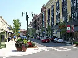 The development for Phase I also included: a comedy club (The Funny Bone), a fitness club (Urban Active), as well as an upscale movie theater (Rave Cinemas). Phase I also includes 100,000 square feet (9,300 m2) of second-floor office space overlooking the town square and approximately 136 residential loft apartments. The mixed-use residential buildings were designed by Torti Gallas and Partners.