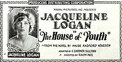 The House of Youth is a 1924 American silent drama film directed by Ralph Ince and starring Jacqueline Logan, Malcolm McGregor and Gloria Grey.[1]