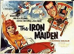 The Iron Maiden is a 1963 British comedy film. The film was directed by Gerald Thomas, and stars Michael Craig, Anne Helm, Jeff Donnell and Alan Hale Jr. There are minor roles for Carry On stalwarts Jim Dale and Joan Sims, and the veteran actor Sam Kydd also appears with his then six-year-old son Jonathan Kydd. The film is known as The Swinging Maiden in America.[2][3]