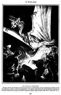 Pterodactyls attack the explorers, illustration from French serial version, 1914