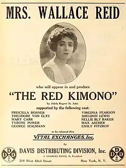 The Red Kimono (spelled as "The Red Kimona" in the opening credits) is a 1925 American silent drama film about prostitution produced by Dorothy Davenport (billed as Mrs. Wallace Reid) and starring Priscilla Bonner.[1] This is the debut film of Director Walter Lang.