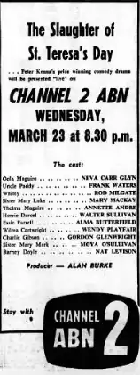 The Slaughter of St. Teresa's Day was a 1960 Australian TV play based on the 1959 stage play of the same name by Peter Kenna.