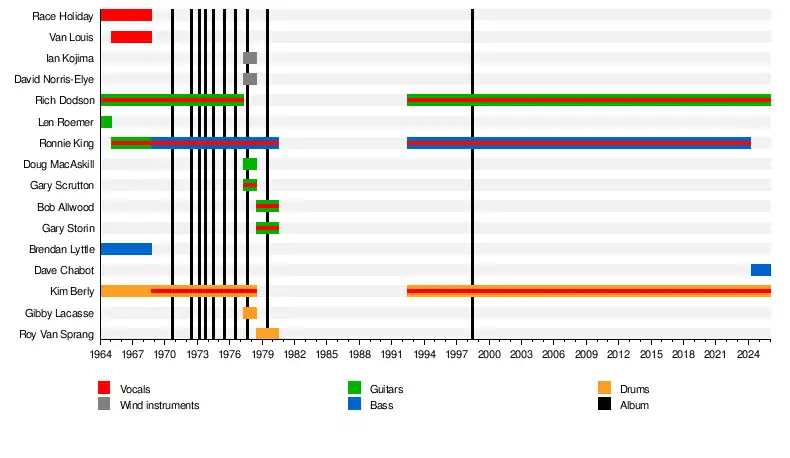 • Ronnie King (Cornelius Vas Sprang) – guitars, vocals (Early 1965-late 1968); bass, vocals (Late 1968-1980; July 1992-March 4, 2024, his death)