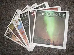 The Sun Star is the student newspaper of the University of Alaska Fairbanks, formed in a merger of the Northern Sun and the Polar Star.[1] The newspaper has been the recipient of journalism awards from the Alaska Press Club, the Columbia Scholastic Press Association, and other groups in past years.[2]