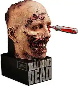 The second season was also released in a limited edition Blu-ray packaging, featuring a zombie head with a screwdriver in the zombie's eye socket, a recreation of a scene from the second season premiere. The limited edition packaging was designed by Greg Nicotero and sculpted by McFarlane Toys.[55]