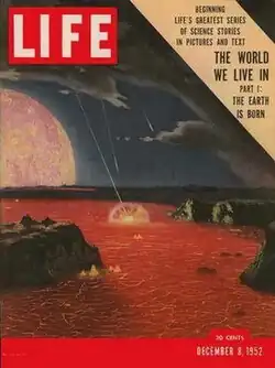 17. ^ Barnett, L. "The World We Live In: Part I The Earth Is Born" (Dec. 8, 1952) Life, Vol. 33, No. 23. NOTE: Article in the original issue is at pages 85-103; 19 total), only the last 15 (89 to 103) pages are available (first few pages [ie, 85-88], which may include some ads, seem to be missing) - however - an image of the first page (page 85) of Part I is at => https://cdn.shopify.com/s/files/1/2990/2012/products/fullsizeoutput_8950_600x.jpg